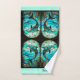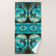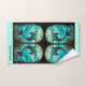 Serviette de bain set Plage Monogrammed Bleu et Dauphin noir dans l'océan à Faux Stainglass Design. Monogramme avec le thème de la plage moderne, vert, bleu et noir