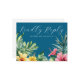 Une élégante carte RSVP couleur bleu océanique aux fleurs tropicales et verdure avec une typographie élégante. L'inverse vous donne vos détails et une demande amusante de chant invité. Conçu par Thisisnotme©