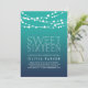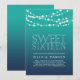 Invités Invitations pour fêter votre 16e anniversaire avec nos invitations à la corde estivale. Le design chic de la plage présente un dégradé foncé arrière - plan dans des tons bleu turquoise turquoise et bleu foncé, avec des lumières à cordes blanches sur le dessus et des lettrages blancs assortis.