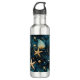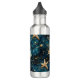 Une bouteille d'eau avec un élégant motif bleu avec étoiles de mer, représentant l'océan.