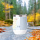Two lines of customizable text highlight this ocean-themed thermal wine tumbler featuring a single crab, a life preserver and a note in a floating bottle.