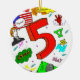 Un design dédié au numéro 5 ! Ode to Five est inspiré par les dessins des élèves du secondaire et du secondaire gribouillent sur leurs carnets et classeurs avec stylo et marqueur - et autour du thème numéro 5! Un gros billet de 5 dollars, un billet de 5 dollars, un nickel, le 5ème de Beethoven, une main, les mots français et espagnol pour 5, la main de 5 cartes stud poker, et même James Madison - le cinquième président de l'Amérique - décorent tous cet ornement unique. Alors fêtez le numéro 5 avec ce design spectaculairement amusant! Le design était dessiné à la main dans un crayon et un stylo et numériquement coloré avec un stylo marqueur. Design original par Sunny. Copyright 2012