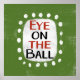 "Eye On The Ball" est un design de texte mignon en vert clair avec du texte en noir et rouge, avec une forme d'accent blanc et des points blancs texturés blancs qui l'entourent.