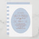 Invitations amis et famille à votre brunch de Pâques et chasse aux oeufs avec cette invitation fantaisiste fête. Les détails de l'événement sont pressés en feuille d'or ou d'argent, et sont placés sur un simple, mais moderne design d'oeuf de Pâques bleu moucheté. Au verso de l'invitation se trouve un motif rayé avec le même arrière - plan bleu moucheté.