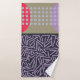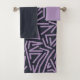 Cet ensemble de serviettes est doté d'un linge de toilette lavande, d'une serviette marine et d'une serviette de bain au design abstrait moderne du milieu du siècle avec trois arrière - plans différents, lignes de zigzag, ovales et cercles, en marine, bleu clair, rouge, kaki et lavande. Si vous voulez le même design avec des couleurs différentes, envoyez-moi un message.