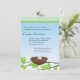 Un oeuf d'oiseau attend d'éclore et le petit est prêt à faire ses débuts, mais d'abord il est temps de célébrer la future mère. Le nid sur une branche feuillue est complété par la bordure en pointe bleue et verte de la polka au sommet. La bordure est répétée au verso pour compenser toute information supplémentaire nécessaire. Cependant, l'oeuf a éclos et la coquille d'oeuf vide est laissée pour ajouter un peu de fantaisie à un thème baby shower adorable. Disponible avec des produits correspondants