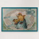 Grand Puzzle avec une image vintage d'un Oeuf de Pâques Bleu et des Poussins entouré d'une coquille d'oeuf fleurie avec des rubans.