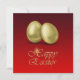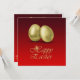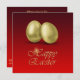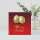 Illustration glamour avec 2 œufs de Pâques dorés sur fond rouge. Enveloppe assortie pour cette invitation :