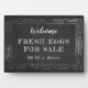 Signe rustique sur une image avec un effet tableau de bord. Panneau polyvalent pour les oeufs, la location de grange, plaque d'information, poulets, produits artisanaux de la ferme, comme le miel, les bougies ou peut-être l'art de la ferme.