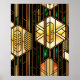 Ce design en vitrail est un motif d'inspiration art déco avec un art complexe et génératif, composé de lignes géométriques qui créent des motifs symétriques. Les couleurs utilisées dans la motif sont vives et vibrantes, donnant au design une sensation de profondeur et de dimensionnalité. Rendu à l'aide d'une technologie de pointe, ce design en vitrail est un motif complexe et magnifique.