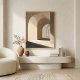 Introduisez une structure calme et de la profondeur dans votre espace avec cette œuvre d'art murale à arche neutre, conçue pour les salons modernes et les intérieurs au style doux. Une arche haute et étroite crée un « cadre dans un cadre » raffiné, guidant l'œil vers une scène sereine et stratifiée au-delà.