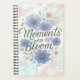 Fleurs bleues et roses élégantes disposées autour du texte cursif stylisé "Moments in Bloom" avec des détails d'aquarelle douce et un arrière - plan noir transparent