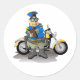 Personne ne veut être arrêté et donner un billet, mais c'est exactement ce qui se passe ici. Cette conception a un policier debout près de sa moto qui écrit un billet. Il porte des teintes sombres. Cet officier de police qui rédige un billet a l'air super sur ces autocollants. Parfait pour vous-même ou comme cadeau