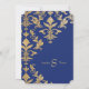 REMARQUE : Il s'agit d'une image imprimée à plat, il n'y a pas de parties scintillant réelle, d'encre métallique or ou de couches. PALETTE DE COULEUR : parties scintillant métallique dorée et bleu roi saphir cobalt profond. CONCEPTION COLLECTION : Une invitation de Fête des mariées correspondante. Conçu pour un événement de cravate noire, un mariage ou une réception, ce design a été conçu à l'aide d'un feuille tourbillonnant à feuilles modernes avec un élément damassé stylisé à la farine de lis. A aussi un script écrit à la main élément de calligraphie mot "et" par Audrey Jeanne Roberts. La carré diagonale décalée à l'intérieur du damas ajoute une touche de style et d'élégance moderne tendance. À l'envers est la répétition du design avec votre monogramme grand et les noms de la mariée et du marié. Le libellé personnalisé de votre invitation peut facilement être customisé avec les champs de modèle simples fournis. Disponible n'importe quel arrière - plan couleur. Contactez-nous et nous vous indiquerons la couleur de votre mariage.