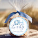 Celebrate a sweet seaside baby shower with these personalized Oh Baby nautical favor stickers. Featuring a charming blue life preserver design and elegant script lettering, these round stickers are perfect for an “Ahoy It’s a Boy” baby shower theme. Customize with the guest of honor’s name and shower date to create polished labels for favor bags, treat packaging, thank you gifts, or envelopes. A classic nautical touch that pairs beautifully with coastal, sailor, and ocean-inspired baby celebrations.