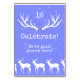Carte de table pour votre fête de vacances avec un design de cerfs et arrière - plan violet. Personnalisable avec numéro de table et salutation. Correspond à d'autres éléments du jeu.