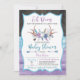 Oh Deer a Baby est presque là. Genre Neutre Violet et Baby shower Boho bleu invitation avec des accents de bois fleuri et rustique