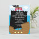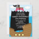 Commencez votre partie de pirate outre de la droite avec notre oh invitation mignonne de fête d'anniversaire de pirate de compagnons comportant un bateau de pirate avec une voile noire et une navigation de drapeau de crâne et d'os sur une mer bleue. Perfectionnez pour un ęr anniversaire de garçons ou n'importe quelle partie d'anniversaire de enfant. Entièrement personnalisable par vous avec votre information. conceptions ©Babystar