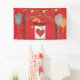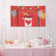 Cette adorable bannière d'anniversaire est certainement le sujet de conversation de la fête ! Un arrière - plan chatoyant rouge avec des mains de "souris" gorgées en forme de coeur, entouré de ballons, d'étoiles et de bruits de fête.