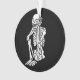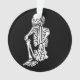 Oh My Skeleton assis la tête en repos dans sa main sur un ornement de Noël.