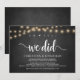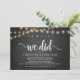 oh oui, nous l'avons fait, Faire-part / invitation de mariage en fuite, sur tableau noir de ferme rustique, guirlande lumineuse. C'est parfait pour votre réception de mariage et fête de célébration après-mariage. Ajoutez vos détails dans la même police / lettrage.