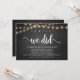 oh oui, nous l'avons fait, Faire-part / Invitation de mariage intime, sur un tableau de ferme rustique, conception de guirlande lumineuse. C'est parfait pour votre réception de mariage et fête de célébration après le mariage. Ajoutez vos détails dans la même police / lettrage.