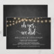 Oh oui, nous l'avons fait, Annonce / Invitation d'élopement de mariage, carte de tableau noir de ferme rustique, conception de lumières de chaîne. Ceci est parfait pour votre réception de mariage et fête de célébration après le mariage. Ajoutez vos détails dans la police / lettrage correspondant.
