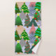 Ce kit de serviettes a été conçu avec des arbres de Noël dans différentes teintes de vert, rose, argent et or avec différentes décorations.