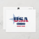 Carte postale Ohio. Un design typographique créatif qui encapsule l'essence de l'Ohio avec des couleurs audacieuses, rouge, blanc et bleu, et des éléments patriotiques, dont des étoiles et des rayures.
