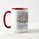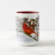 Le rouge de l'oiseau cardinal avec la neige blanche est une image hivernale parfaite. Les petites baies rouges accomplissent l'image avec une éclaboussure de couleur sur cette tasse.