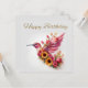 Un colibri volant recouvert de tournesols roses, de ruelles et de tulipes Joyeux anniversaire en écriture or