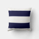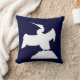 élément de la décoration sur le thème de l'océan OISEAU DE MER, BLANC sur coussin bleu marine d'un côté et rayure bleu marine et blanc au dos.