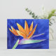 Le ventilateur vibrant comme la couronne de pétales oranges d'un oiseau de fleur paradisiaque contrastent avec l'arrière - plan bleu royal profond. Le tableau de fleurs d'aquarelle offre une vue panoramique de l'oiseau de fleur de paradis. Cette fleur est connue sous le nom de Fleur de Grue en Afrique du Sud. Personnalisez cette invitation à la fleur Oiseau du Paradis avec votre propre texte et images en utilisant le bouton "Customisez-le" pour créer une carte à fleur Oiseau du Paradis ou des cadeaux !