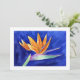 Le ventilateur vibrant comme la couronne de pétales oranges d'un oiseau de fleur paradisiaque contrastent avec l'arrière - plan bleu royal profond. Le tableau de fleurs d'aquarelle offre une vue panoramique de l'oiseau de fleur de paradis. Cette fleur est connue sous le nom de Fleur de Grue en Afrique du Sud. Personnalisez cette invitation à la fleur Oiseau du Paradis avec votre propre texte et images en utilisant le bouton "Customisez-le" pour créer une carte à fleur Oiseau du Paradis ou des cadeaux !