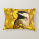 Voici une coussin à accent floral avec une adorable poule blanche et noire parmi les fleurs de forsythie jaune et or. Ce petit oiseau doux est l'une des créatures les plus amicales du royaume animal. Une bonne idée pour les jardiniers ou les oiseaux !