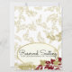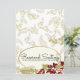 Jolies feuilles et oiseaux en dentelle, panneau de mariage réservé dans une forêt rustique en rouge foncé et or. Score à la main et pli pour la carte de tente.