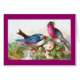 Un oiseau se tient sur une trombe en bambou et l'autre parmi les roses d'abricot dans cette carte commerciale victorienne du 19ème siècle.