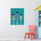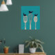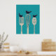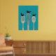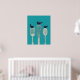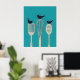 Un design graphique amusant et rétro avec des oiseaux sur les ustensiles de cuisine, idéal pour l'art mural de la cuisine.