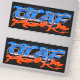 Un autocollant/sticker personnalisé très élégant et stylé dans un design graffiti urbain streetart orange bleu pour Olaf.