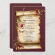 A vintage burgundy colored background covers the back and front of this invitation.