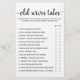 Achetez ce jeu et profitez de la carte Old Wives Tales de haute qualité pour votre événement! Design noir et blanc neutre pour le genre. RÉPONSES : 1-FILLE, 2-FILLE, 3-GARÇON, 4-FILLE, 5-GARÇON, 6-GARÉ, 7-GARÇON, 8-FILLE, 9-FILLE, 10-GARÇON, 11-GARÇON, 12-FILLE, 13-FILLE, 14-GARÇON