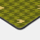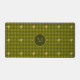 Un design classique en houndstooth dans des tons pas si classiques de vert olive crée un motif amusant et mis à jour avec un accent final d'or métallique mélangé dans pour créer un design qui va vraiment éclater. Customisez le monogramme dans le cercle avec votre initiale pour créer un tapis de bureau unique pour votre travail ou espace de jeu.