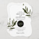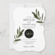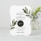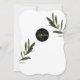 Ce design comprend des feuilles d'oliviers et des branches. La belle verdure des feuilles d'oliviers vient compléter l'élégante forme de cercle noir moderne encerclant la date mariage. Un mélange parfait de modernité et de chic avec des couleurs d'olivier rustiques. Le vert olive, le noir et le blanc s'accordent parfaitement avec un mariage à thème méditerranéen. Un design faire-part de mariage unique avec des éléments modernes. Des articles de papeterie mariage correspondants et d'autres formats d'invitation de mariage sont également disponibles.