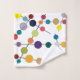 Ce kit de serviettes a un design moderne du milieu du siècle de lignes noires avec des cercles de différentes couleurs et tailles sur un champ de blanc.