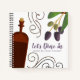 Carnet de recette super mignon pour cuisines et recettes de cuisson avec branches d'olivier et une bouteille d'huile d'olive ou de vinaigre avec des fleurs décoratives, parfait pour enregistrer vos favoris personnels pour une collection de recettes de conservation.