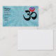 Produit: cartes de visite de yoga — Design : symbole om unique avec lune de croissant rouge et lotus rose — Arrière - plan:bleu abstrait