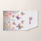 Cette serviette à main personnalisée dispose d'un jardin de papillons couleur aquarelle rêveur où des papillons à ailes colorées dansent parmi des fleurs sauvages doux. Avec un arrière - plan apaisant de teintes rose, bleue et pêche, cette charmante illustration crée une atmosphère magique et sereine.