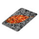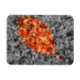 Photographie d'automne de couleur sélective de feuilles de myrtes tombées, avec une forme de feuilles dorées de rouge, orange et jaune vif contre un arrière - plan noir et blanc.