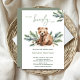Nous pouvons attendre l'invitation baby shower aquarelle, couleur neutre pour le genre Aquarelle Bear Bienvenue à notre collection de Baby showers Ours de bois! Dotés d'adorables aquarelles, de délicates branches de pins et d'une palette apaisante de couleur verte à la sauge, ces invitations sont parfaites pour une célébration douillette inspirée de la nature. Conçues avec une touche minimaliste, elles apportent chaleur et charme à votre événement spécial. Idéal pour les baby showers rustiques, boisés ou sans sexe ! Parcourez la collection et trouvez le design parfait pour accueillir votre petit paquet de joie!