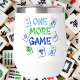 Sip in style with this chic “One More Game” mahjong wine tumbler — perfect for tile lovers who never want the fun to end! Surrounded by beautiful watercolor blue, green, and pink tiles, this design blends playful charm with grandmillennial elegance. Ideal for mahjong nights, girls’ trips, or a hostess gift your friends will love.